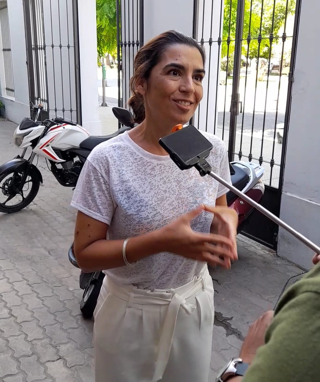 Finalizando la jornada la decana, Adriana Goicochea y el vicerrector, Paul Osovnikar, compartieron un momento en los pasillos de la universidad con futuros estudiantes que finalizaban la inscripción a las carreras.