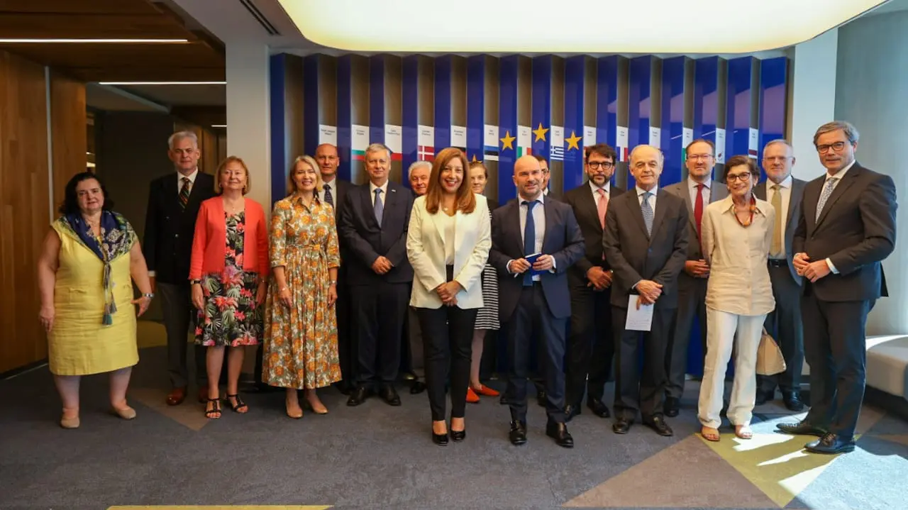 Estuvieron presentes las y los Embajadores de Austria, Andreas Melan; Reino de Bélgica, Karl Dhaene; Bulgaria, Stoyan Mihaylov; República Checa, ĽubomÃr HladÃk; Croacia, Duska Paravic; Eslovenia, Igor Å ef; Eslovaquia, Rastislav Hindický; España, MarÃa Jesús Alonso; Finlandia, Nicola Lindertz; Francia, Claudia Scherer-Effosse; Grecia, Elisabeth Fotiadou; HungrÃa, Carmen Csernelházi; Irlanda, Gerard McCoy; Italia, Fabrizio Lucentini; Reino de los PaÃses Bajos, Bernd Scholtz; Polonia, Aleksandra PiÄ…tkowska; República de Portugal, José Frederico Ludovice; Rumania, Dan Petre; Reino de Suecia, Ulrika Grufman y de la Unión Europea, Amador Sánchez Rico, junto su Encargado de Negocios, Enrico Prezio.