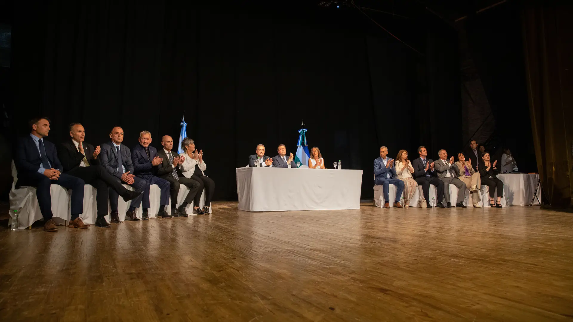 También estuvieron presentes en el acto los ministros de Obras y Servicios Públicos, Alejandro Echarren, de Desarrollo Humano, Deporte y Cultura, Juan Pablo Muena, de Salud, Ana Senesi, de Gobierno, Trabajo, Modernización y Turismo, Federico Lutz; el secretario General de la Gobernación, Nelson Cides, la secretaria de Estado de EnergÃa y Ambiente, Andrea Confini, los vocales del Superior Tribunal de Justicia, Sergio Ceci y Maria Cecilia Criado, el procurador general de la provincia, Jorge Crespo y el fiscal general, Fabricio Brogna; legisladores y legisladoras provinciales, y demás autoridades provinciales y municipales.